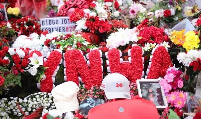 Nuno Mendes, Vitinha, Gonçalo Ramos și João Neves (cei patru internaționali portughezi ai lui PSG), alături de Luis Campos, au depus flori albe pe steaua memorială dedicată lui Diogo Jota, situată în apropierea stadionului Anfield.